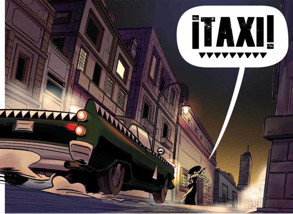 En Taxi Dr. F. Stain nos cuenta el encuentro de un taxista en los años cincuenta con una misteriosa pasajera. Nos hace preguntarnos si podemos elegir la ruta que nos lleve a nuestro destino a bordo de un taxi cocodrilo.